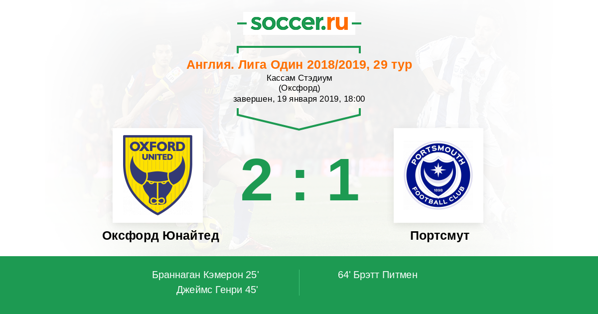 Протокол матча Оксфорд Юнайтед против Портсмут