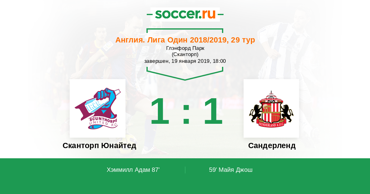 Протокол матча Сканторп Юнайтед против Сандерленд
