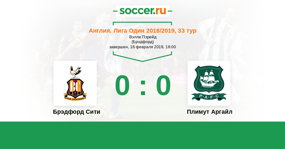 Протокол матча Брэдфорд Сити против Плимут Аргайл