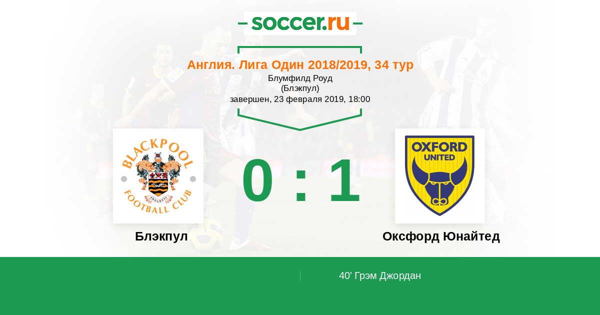 Протокол матча Блэкпул против Оксфорд Юнайтед