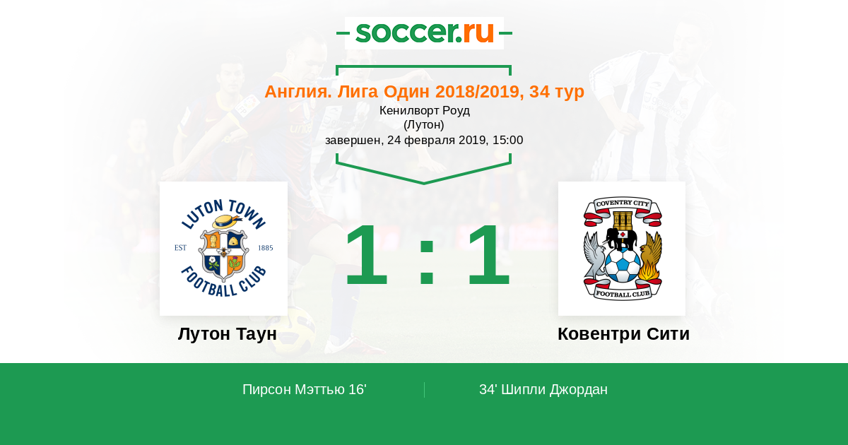 Протокол матча Лутон Таун против Ковентри Сити