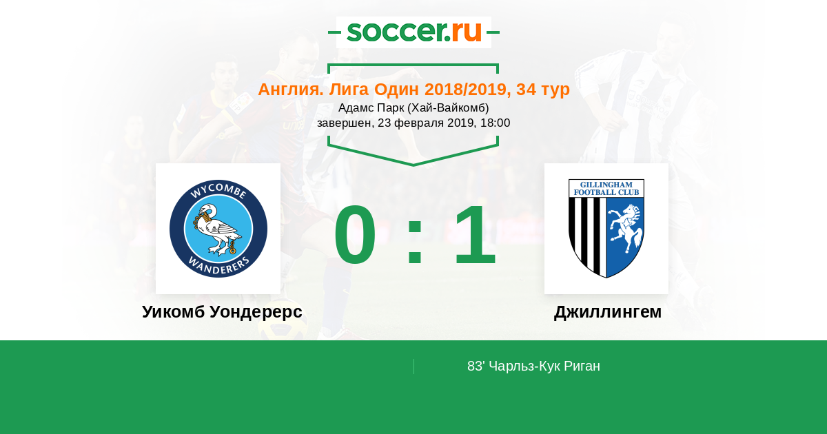Протокол матча Уикомб Уондерерс против Джиллингем