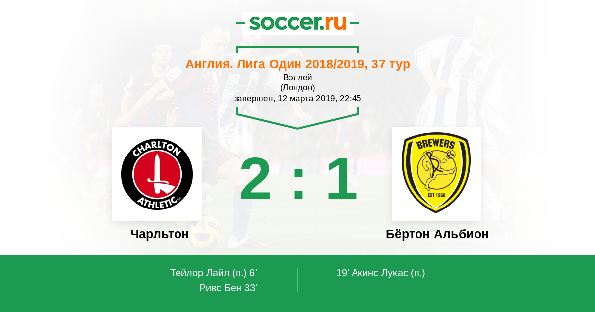 Протокол матча Чарльтон против Бёртон Альбион