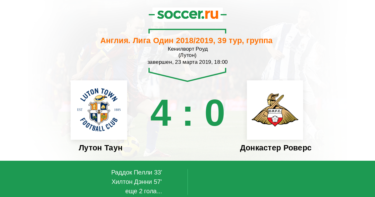 Протокол матча Лутон Таун против Донкастер Роверс
