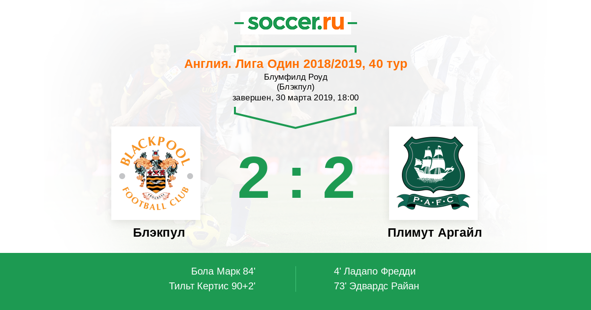 Протокол матча Блэкпул против Плимут Аргайл