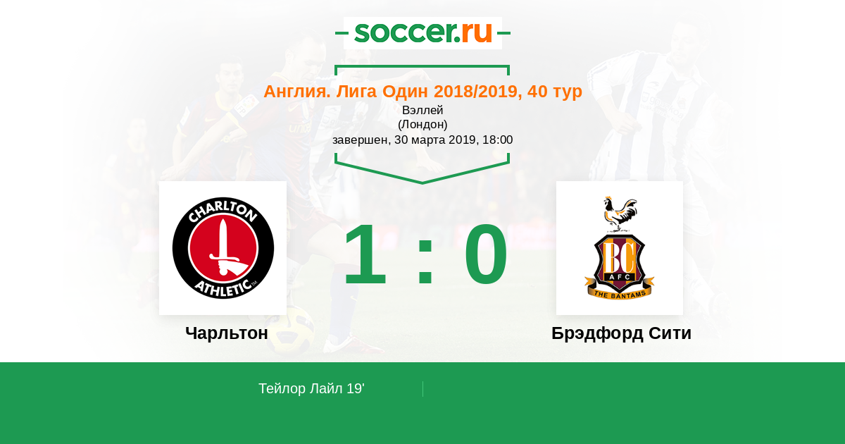 Протокол матча Чарльтон против Брэдфорд Сити