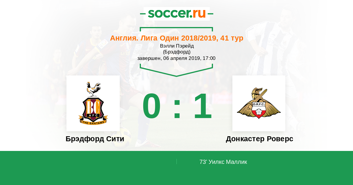 Протокол матча Брэдфорд Сити против Донкастер Роверс