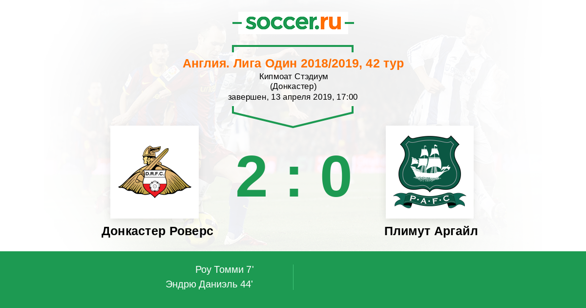 Протокол матча Донкастер Роверс против Плимут Аргайл