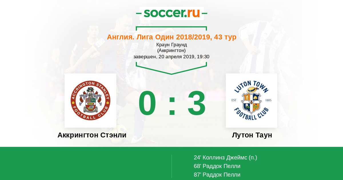 Протокол матча Аккрингтон Стэнли против Лутон Таун