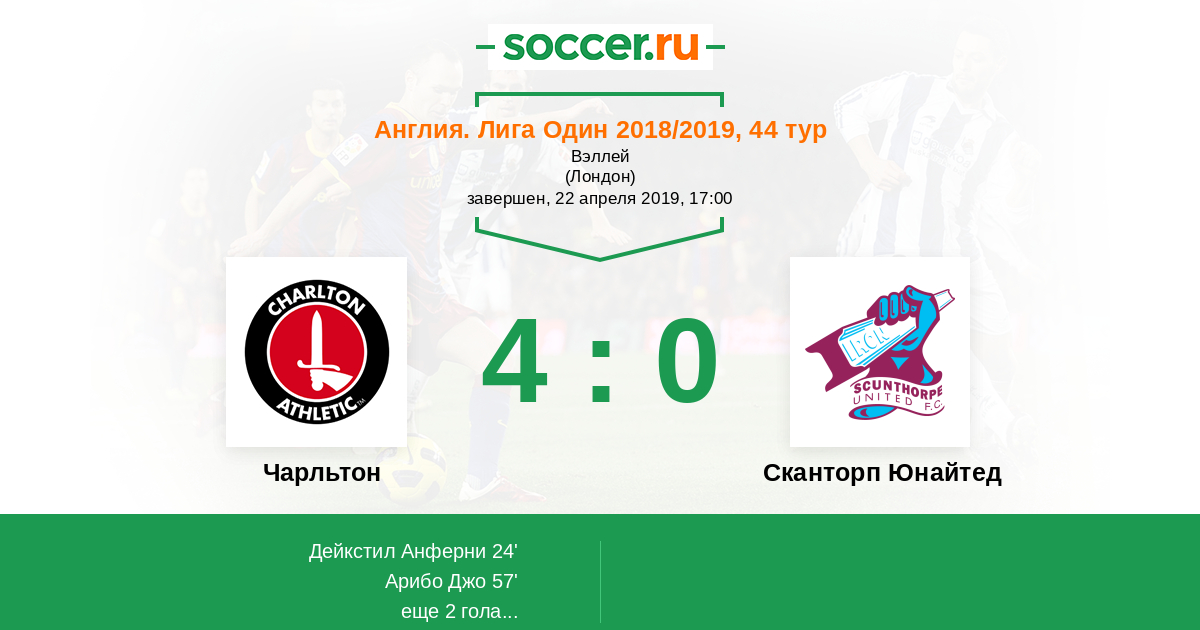 Протокол матча Чарльтон против Сканторп Юнайтед