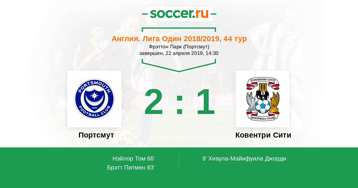 Протокол матча Портсмут против Ковентри Сити