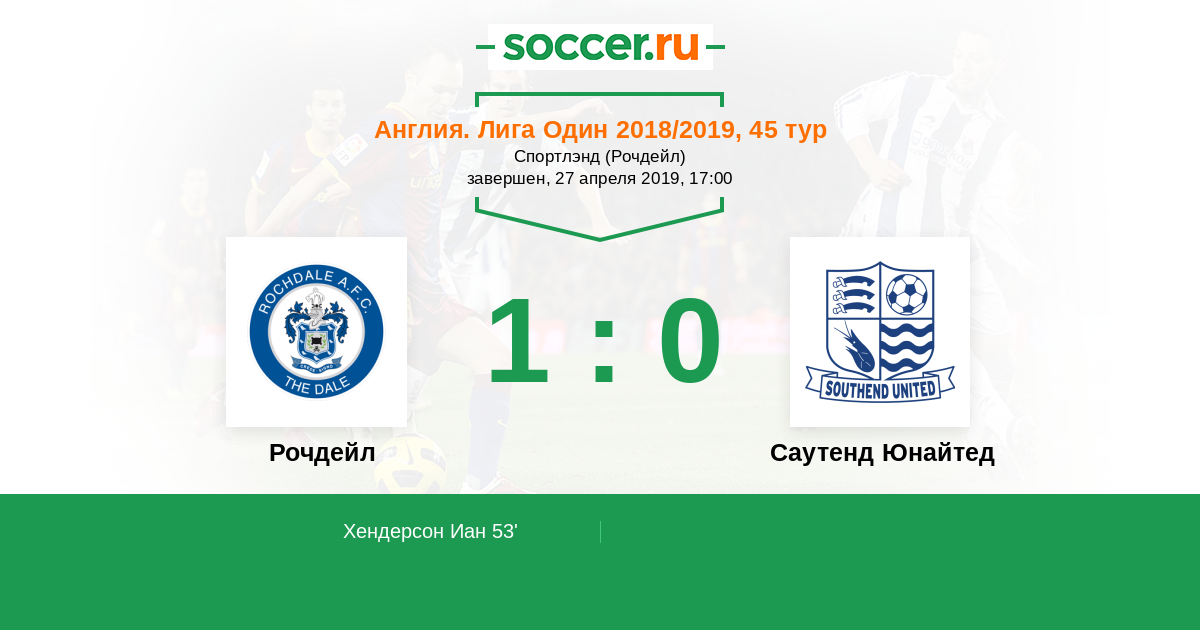Протокол матча Рочдейл против Саутенд Юнайтед