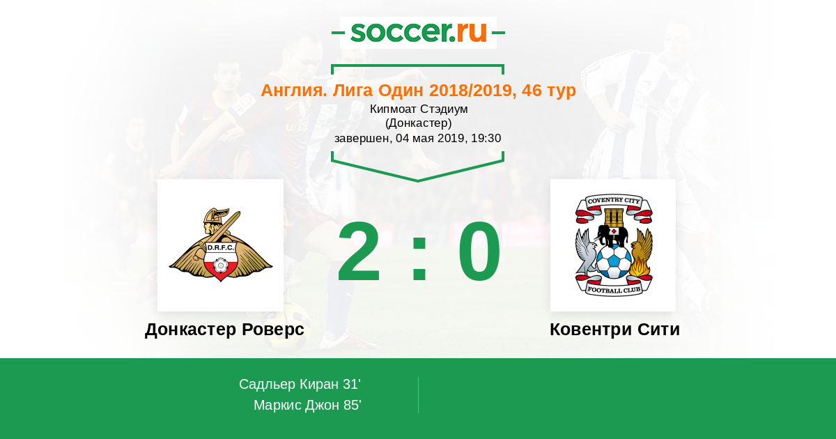 Протокол матча Донкастер Роверс против Ковентри Сити