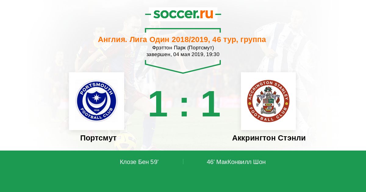 Протокол матча Портсмут против Аккрингтон Стэнли