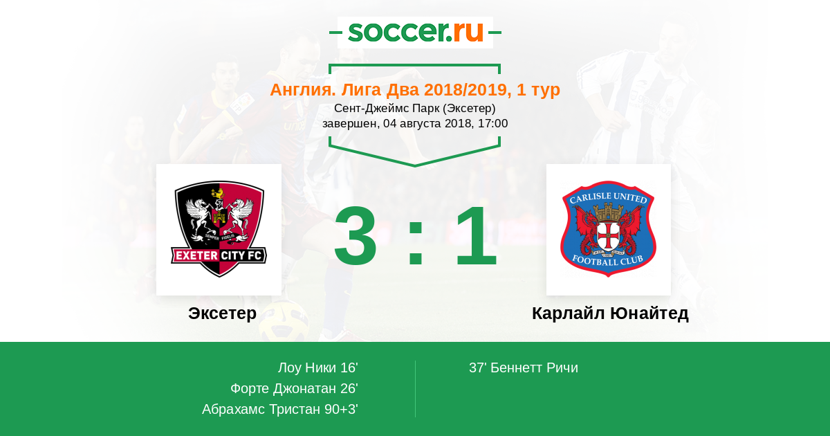 Протокол матча Эксетер против Карлайл Юнайтед