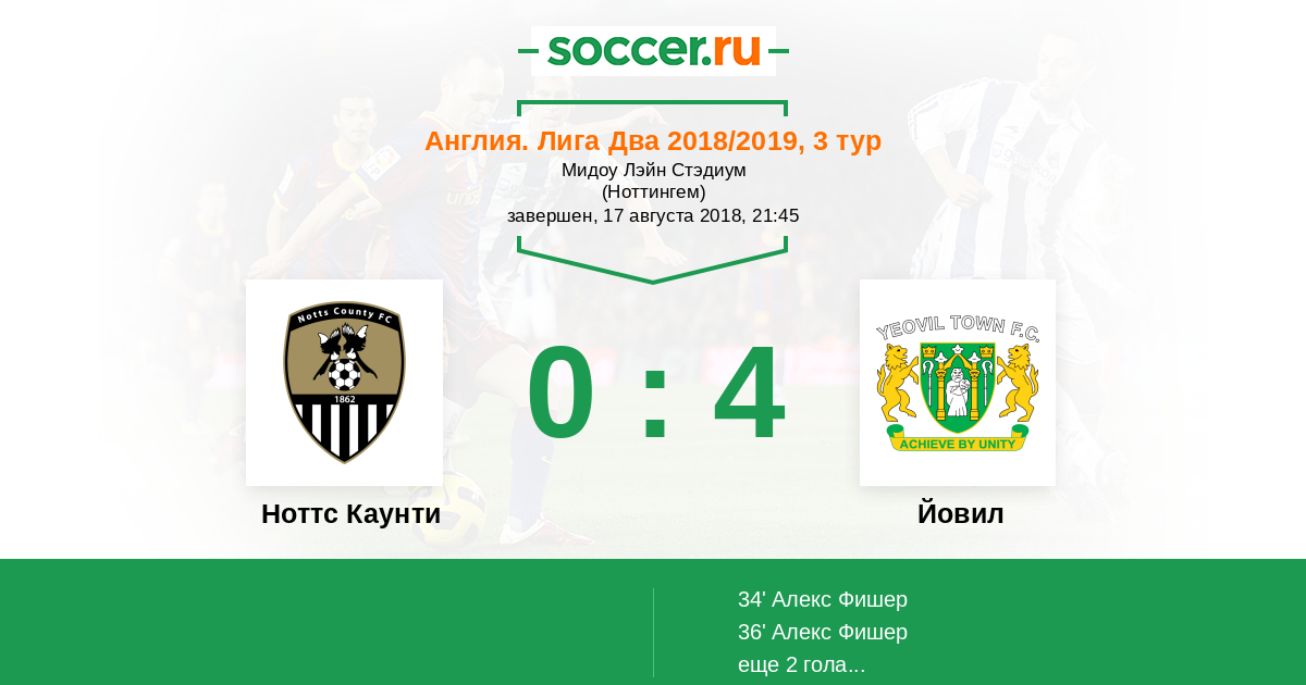 34' (0:1) Алекс Фишер (9) (Аркин Йоан (18))