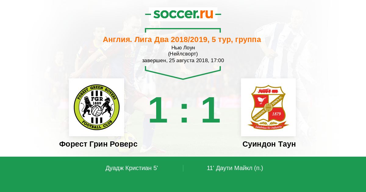 Протокол матча Форест Грин Роверс против Суиндон Таун