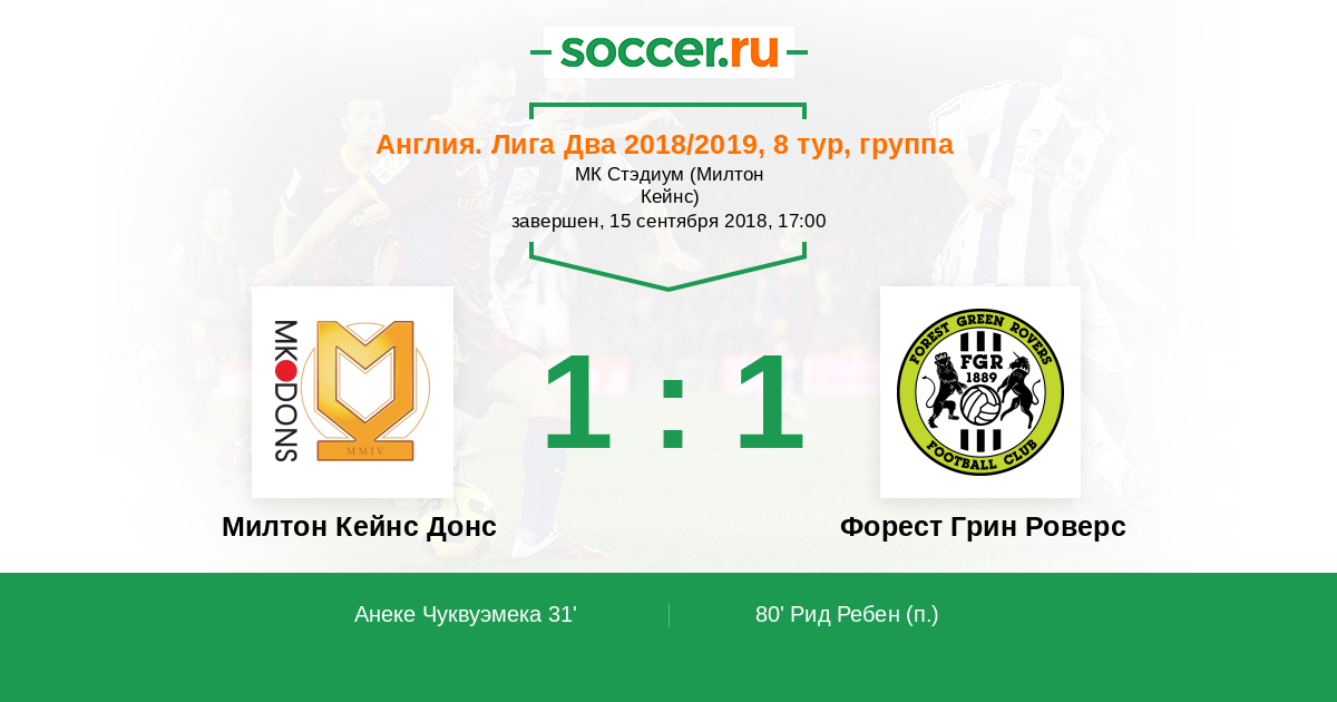 Протокол матча Милтон Кейнс Донс против Форест Грин Роверс