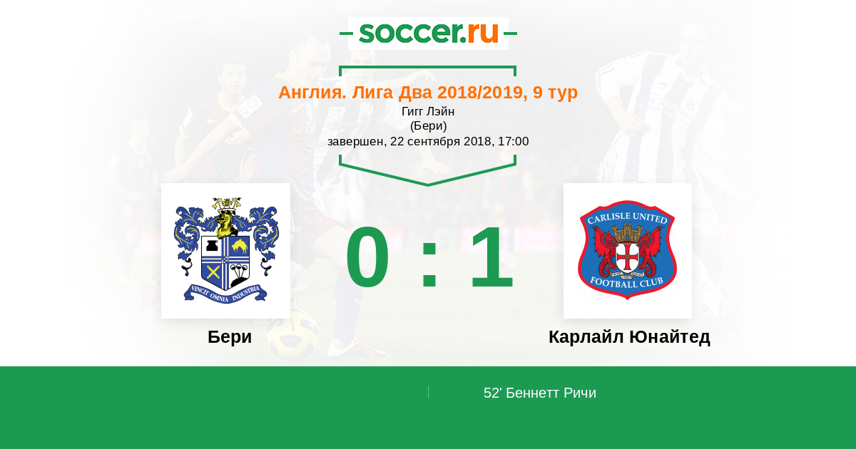 Протокол матча Бери против Карлайл Юнайтед