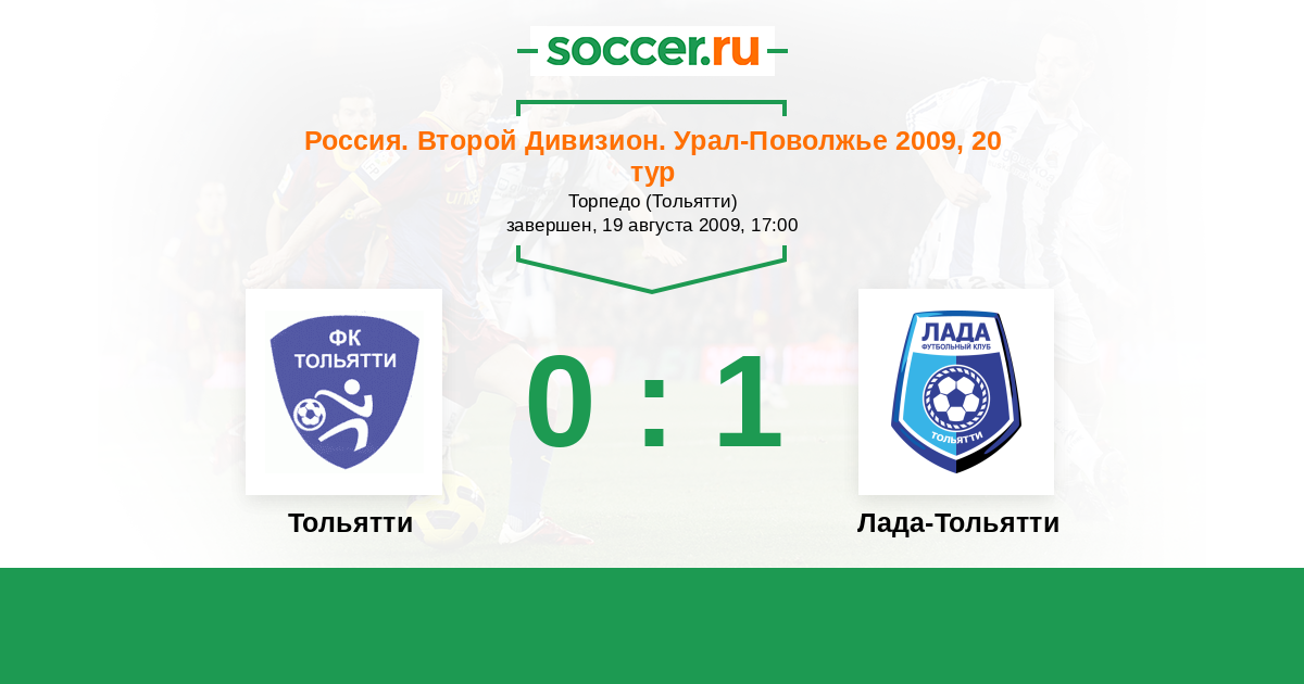 Россия. Вторая лига. Группа 4 10.05.2009 Лада-Тольятти Логотип футбольный клуб Лада-Тольятти 0:0 Логотип футбольный клуб Тольятти Тольятти