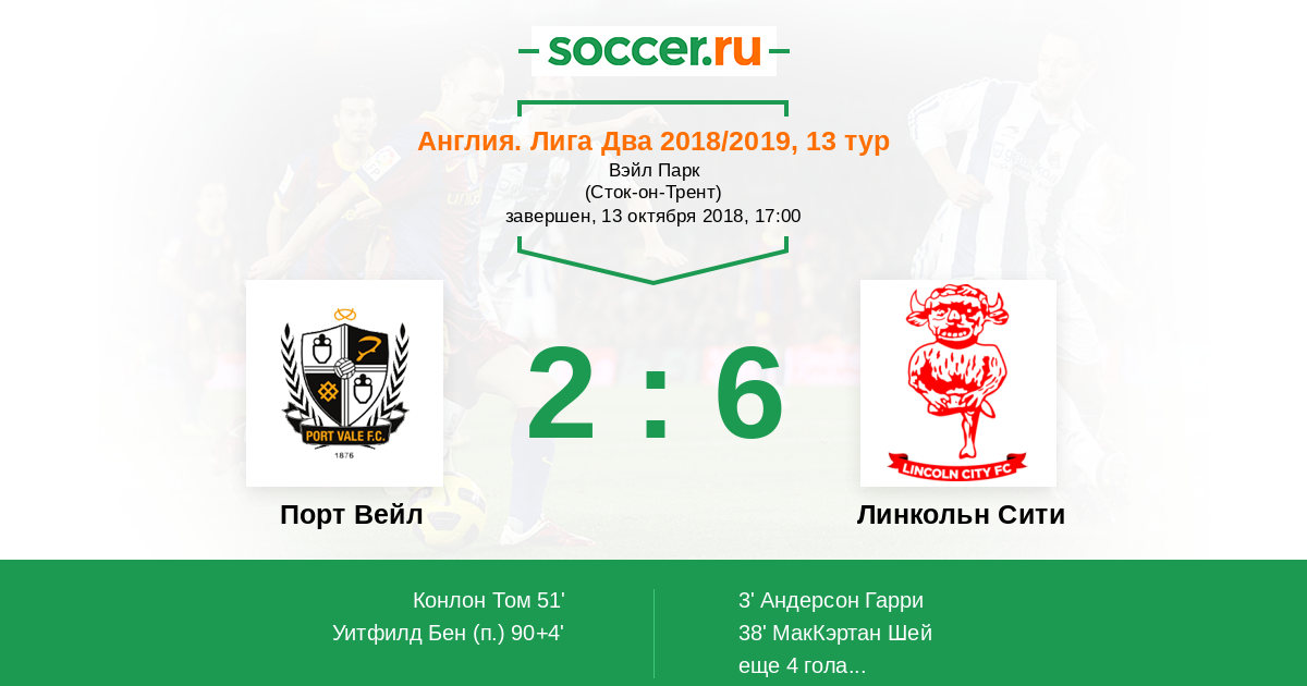Протокол матча Порт Вейл против Линкольн Сити