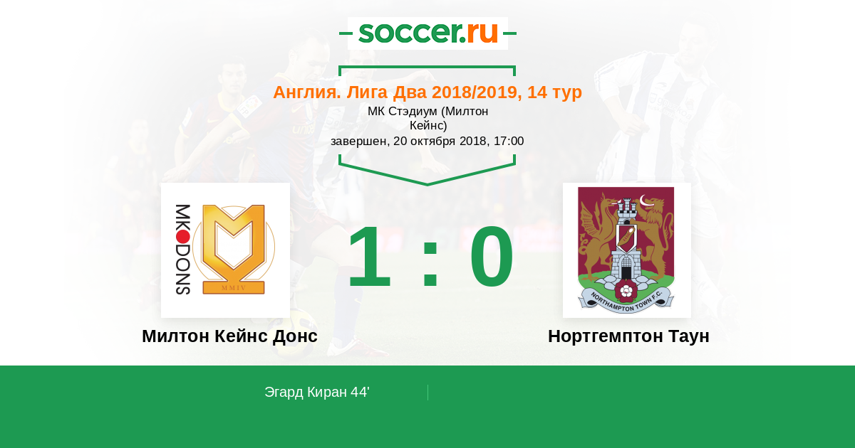 Протокол матча Милтон Кейнс Донс против Нортгемптон Таун