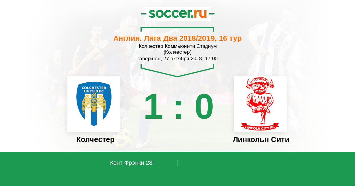 Протокол матча Колчестер против Линкольн Сити