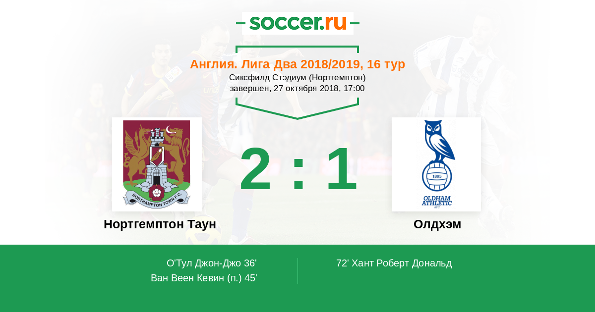 36' (1:0) О'Тул Джон-Джо (21) (Ван Веен Кевин (10))