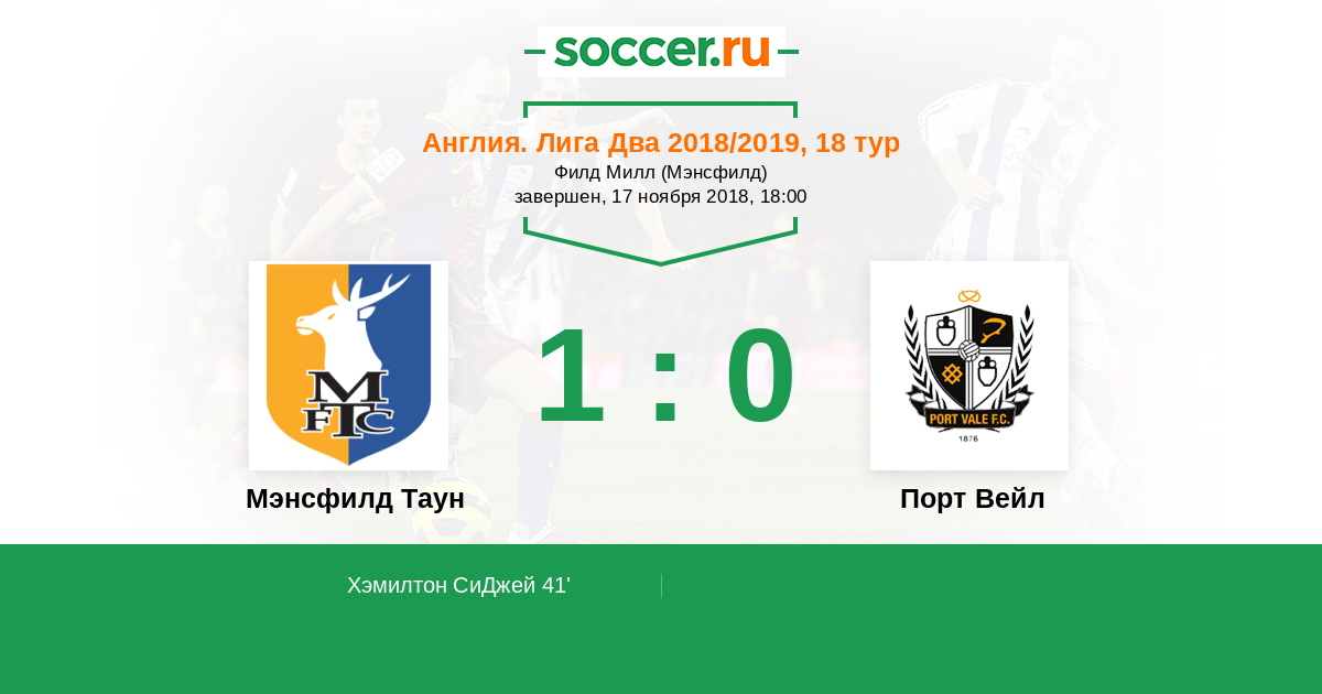 Протокол матча Мэнсфилд Таун против Порт Вейл
