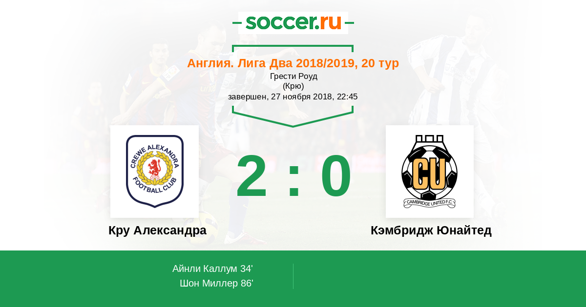 Протокол матча Кру Александра против Кэмбридж Юнайтед