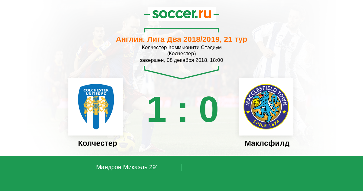 Протокол матча Колчестер против Маклсфилд