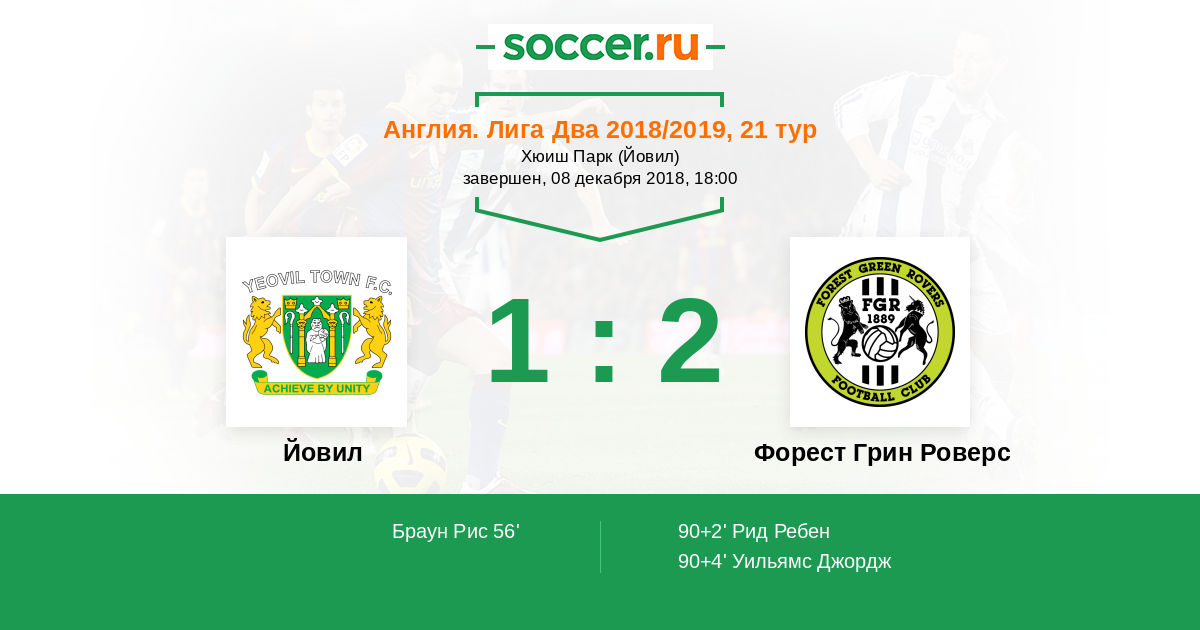 Протокол матча Йовил против Форест Грин Роверс