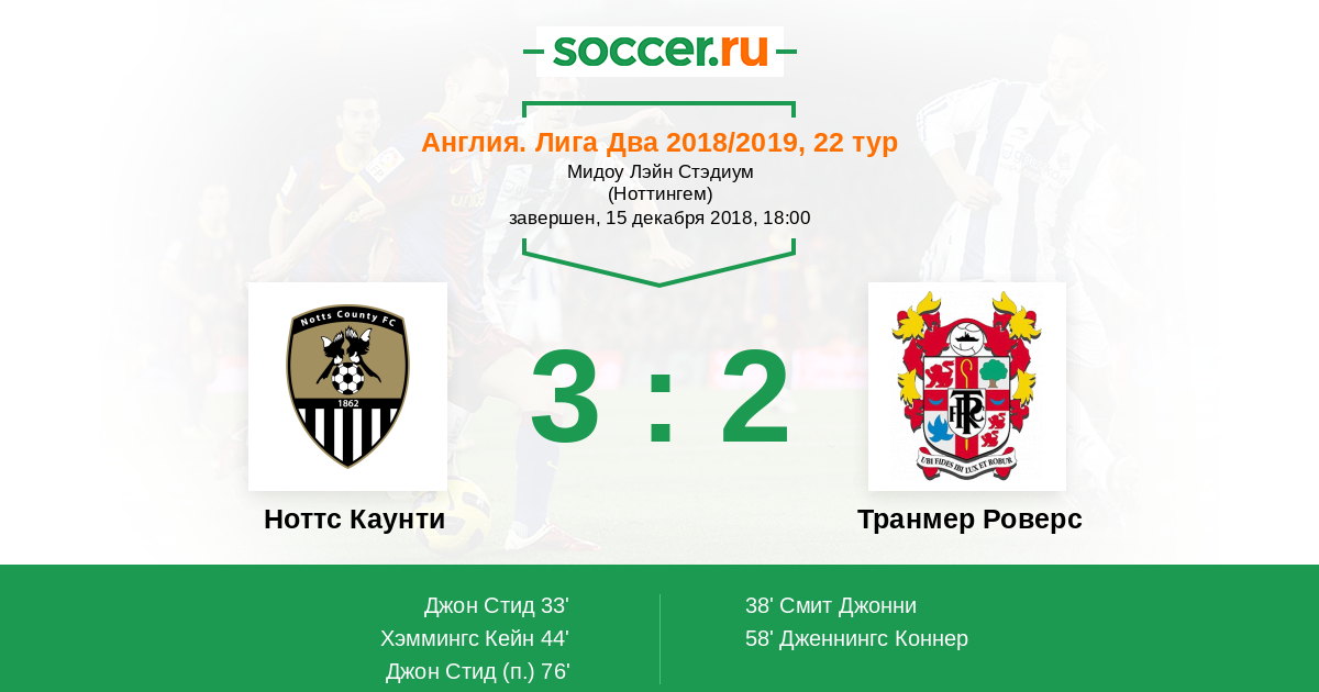 Протокол матча Ноттс Каунти против Транмер Роверс