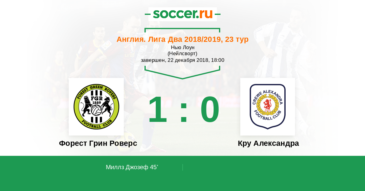 Протокол матча Форест Грин Роверс против Кру Александра