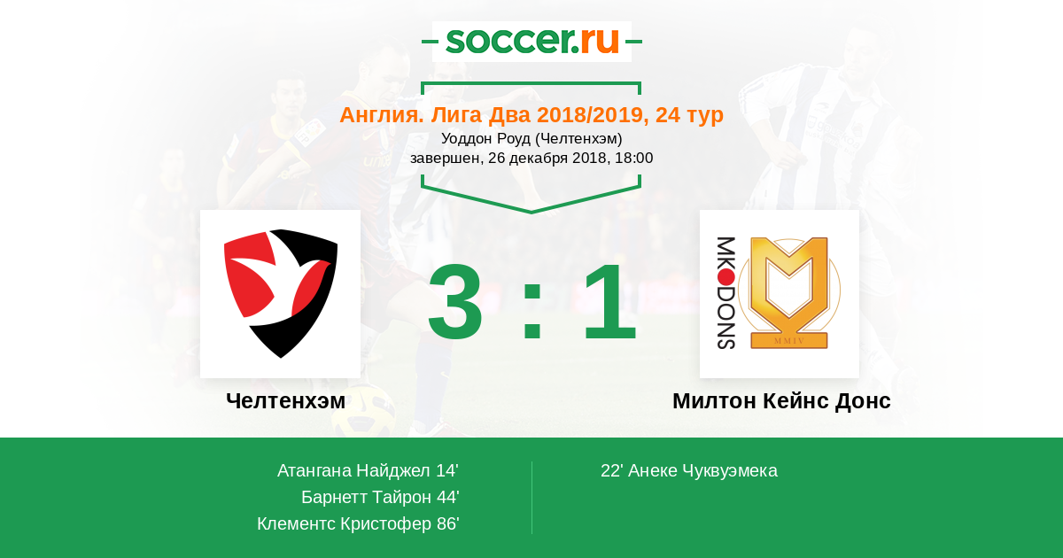 Протокол матча Челтенхэм против Милтон Кейнс Донс