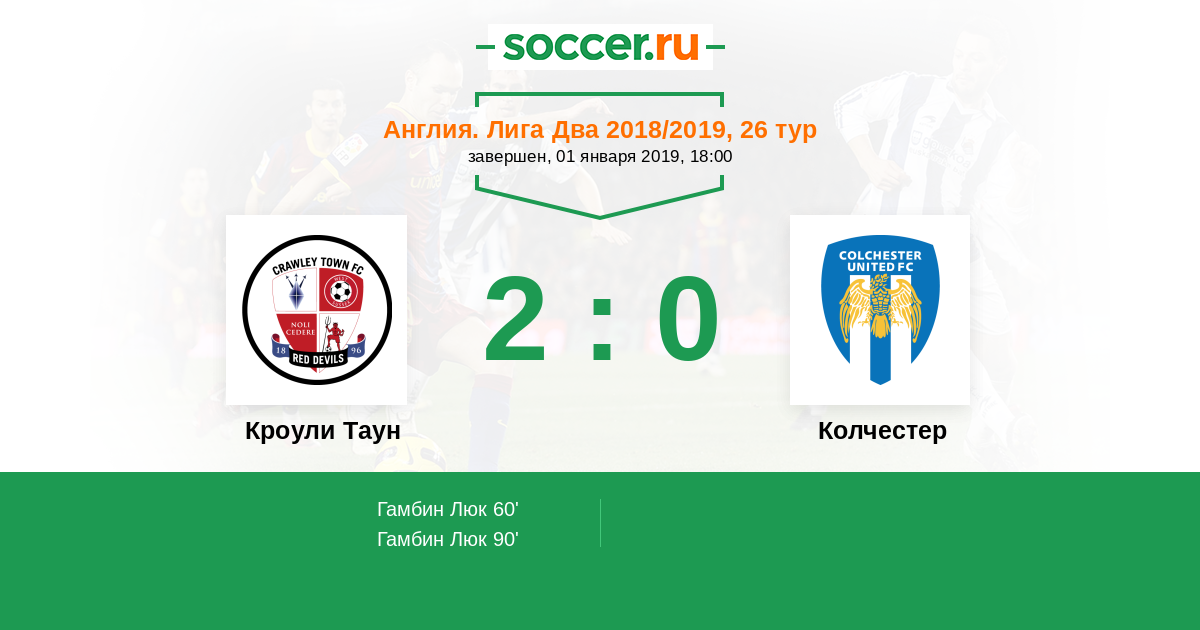 Протокол матча Кроули Таун против Колчестер