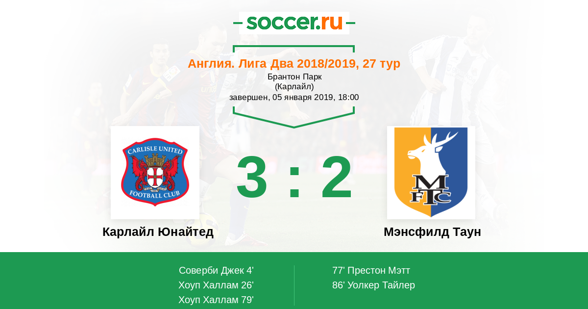 Протокол матча Карлайл Юнайтед против Мэнсфилд Таун