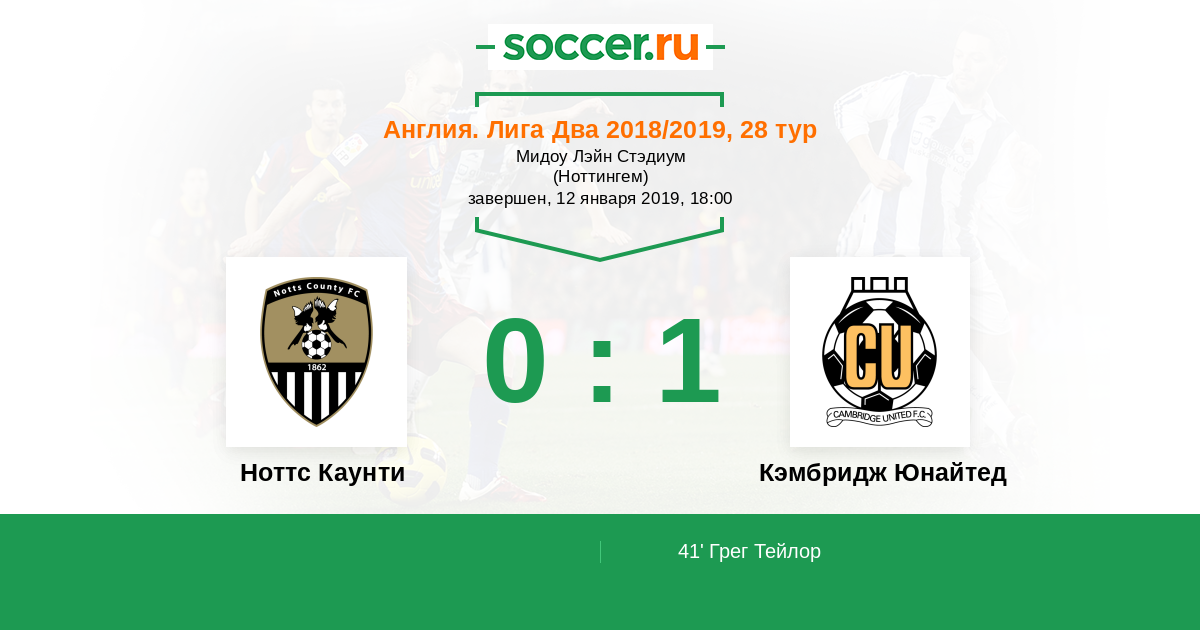 Протокол матча Ноттс Каунти против Кэмбридж Юнайтед