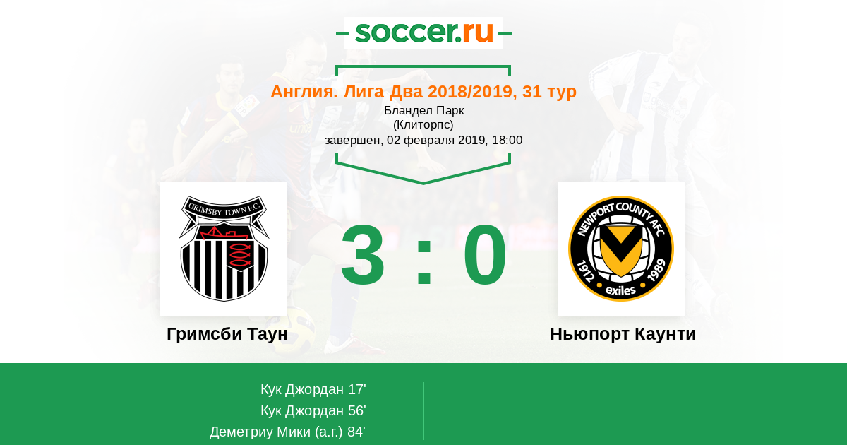 Протокол матча Гримсби Таун против Ньюпорт Каунти