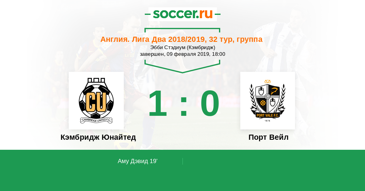 Протокол матча Кэмбридж Юнайтед против Порт Вейл