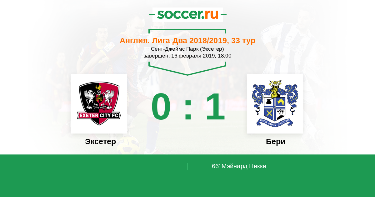 Протокол матча Эксетер против Бери
