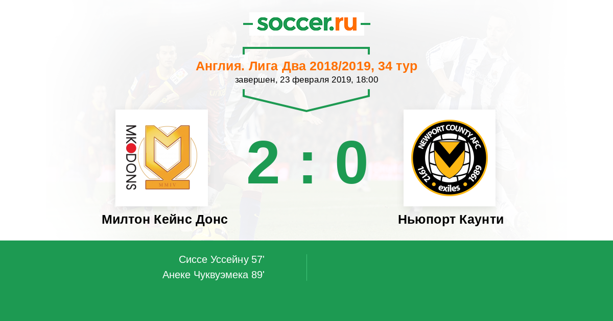 Протокол матча Милтон Кейнс Донс против Ньюпорт Каунти