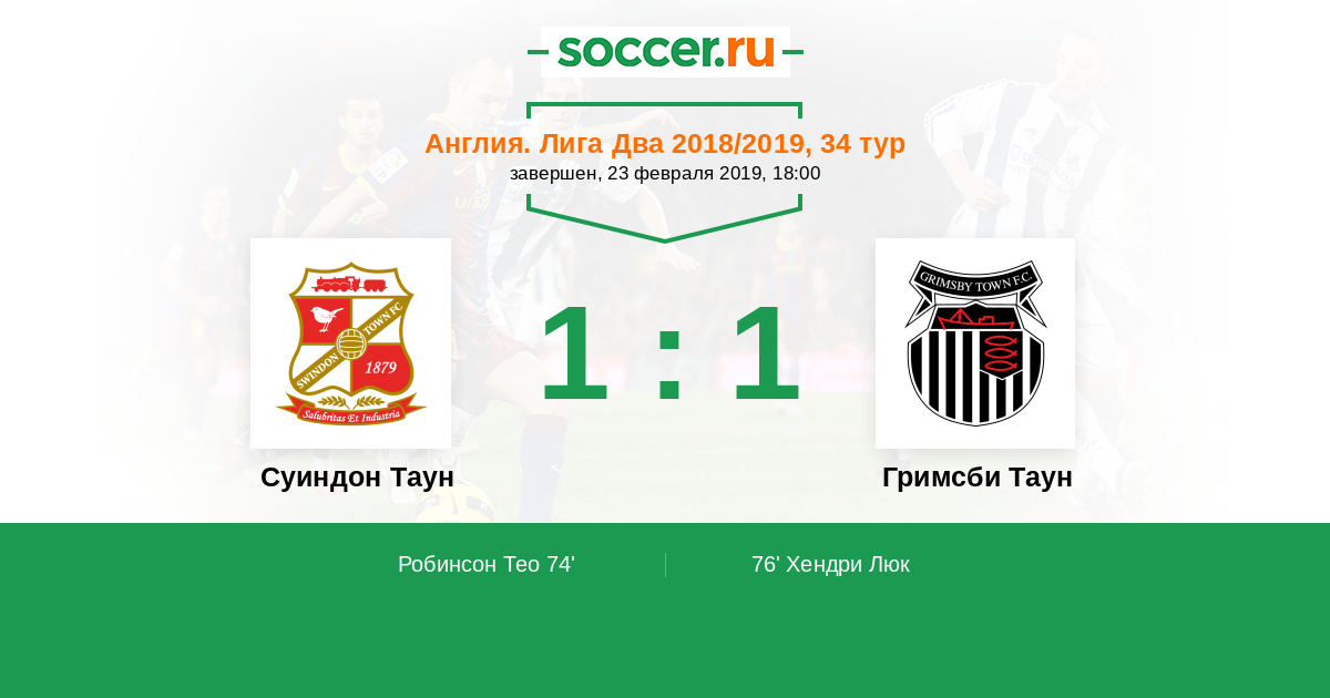 76' (1:1) Хендри Люк (27) (Эмблтон Эллиот (22))