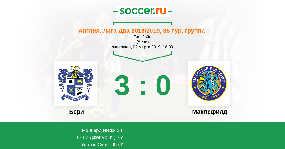 Протокол матча Бери против Маклсфилд