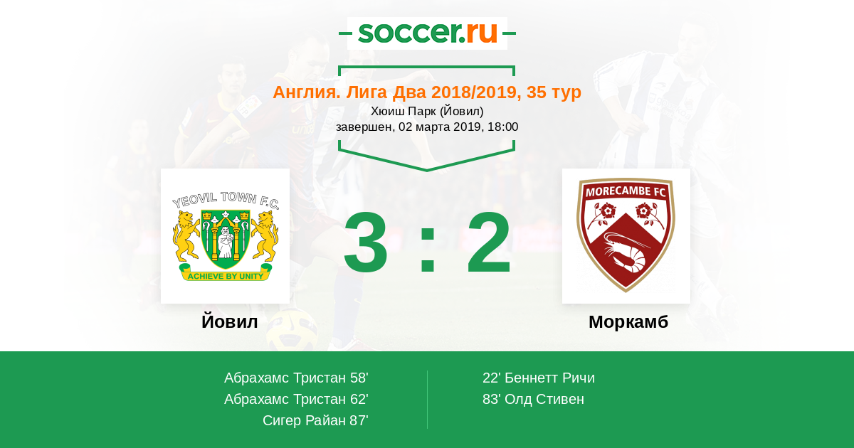 Протокол матча Йовил против Моркамб