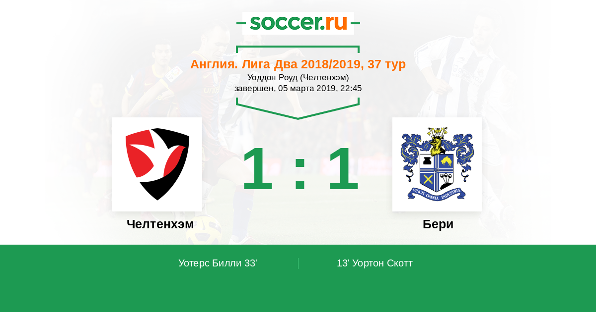33' (1:1) Уотерс Билли (21) (Реглан Чарли (24))