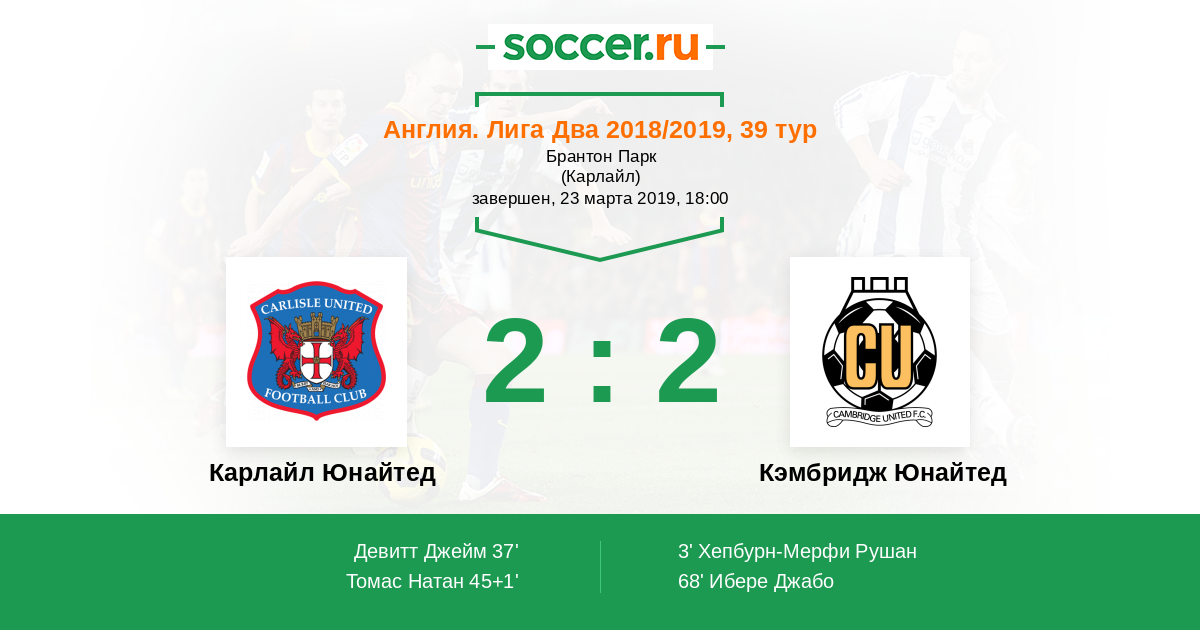 Протокол матча Карлайл Юнайтед против Кэмбридж Юнайтед
