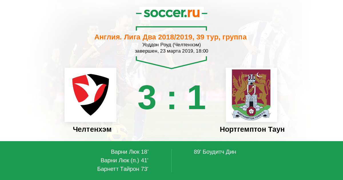 Протокол матча Челтенхэм против Нортгемптон Таун