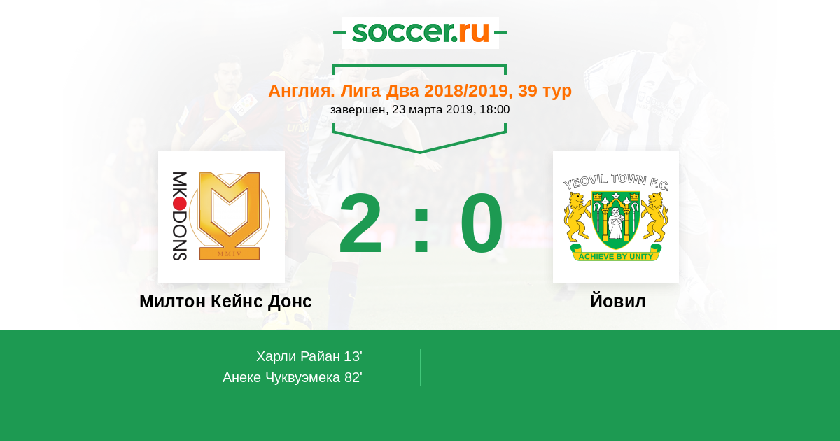 82' (2:0) Анеке Чуквуэмека (10) (Хескет Джейк (11))