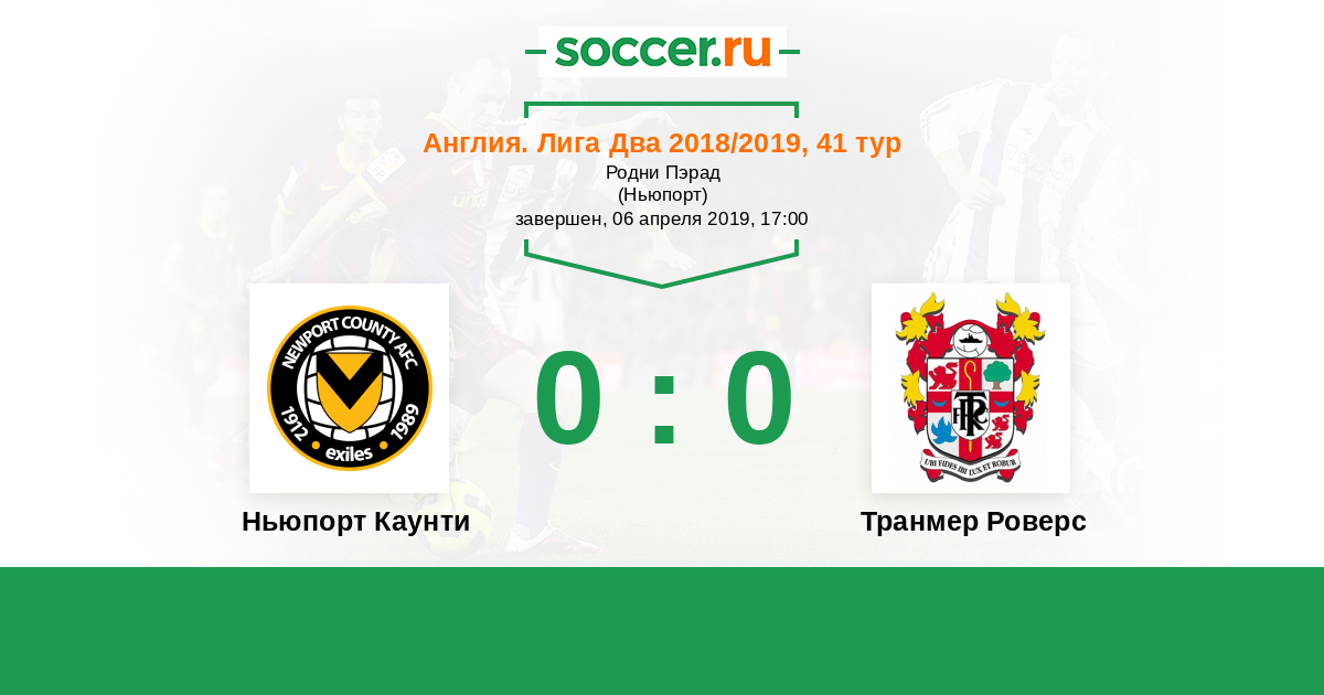 Протокол матча Ньюпорт Каунти против Транмер Роверс